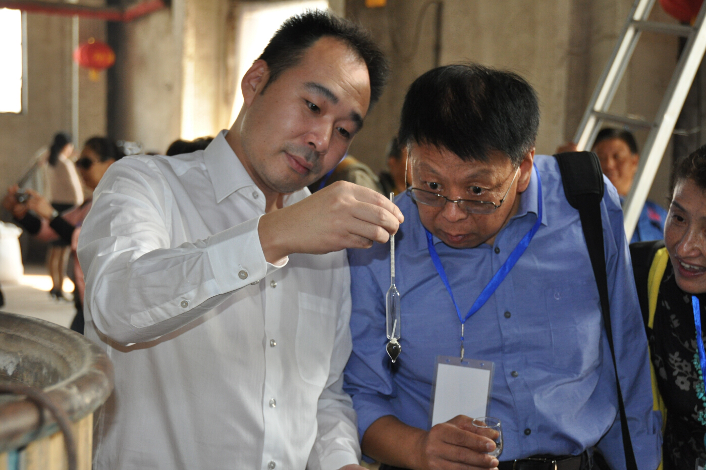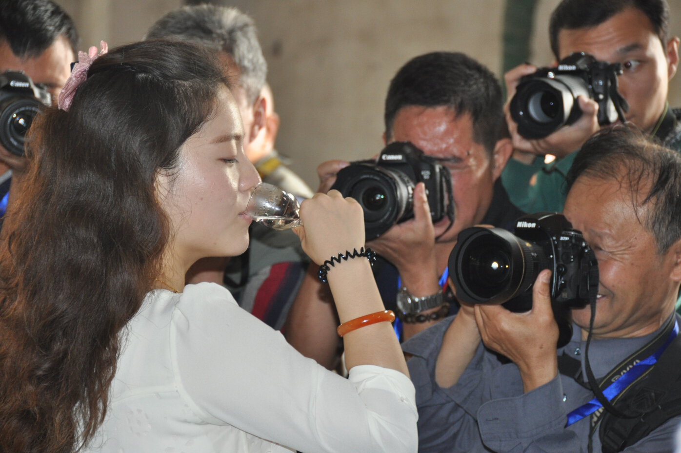 參賽的各位朋友們?cè)诠局v解員的介紹和引導(dǎo)下,了解了心酒的發(fā)展歷程,來(lái)到了糧食酒生產(chǎn)車間。生產(chǎn)車間熱氣騰騰的工作場(chǎng)面,調(diào)動(dòng)起了早已按捺不住的創(chuàng)作沖動(dòng),紛紛拿起手中的長(zhǎng)槍短炮拍個(gè)不停。他們尋找不同角度,努力拍到自己想要的畫(huà)面,或站、或蹲、或趴在地上,或攀上高處,或讓工人放慢操作速度,或讓我們的美女講解員臨時(shí)客串起了“模特兒”,就連董事長(zhǎng)也未放過(guò),或合影,或當(dāng)講解員,或端起酒杯一起品嘗熱騰騰的原酒。