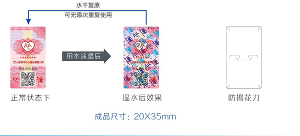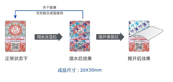 1、用水等液體涂抹標(biāo)簽表面后會(huì)顯示深藍(lán)、淺藍(lán)色心酒字樣,水干后可復(fù)原,可重復(fù)涂抹顯示。