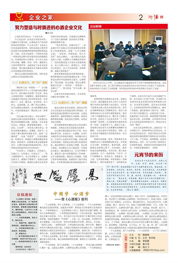 熱烈祝賀心心酒業(yè)《心酒報》創(chuàng)刊發(fā)行